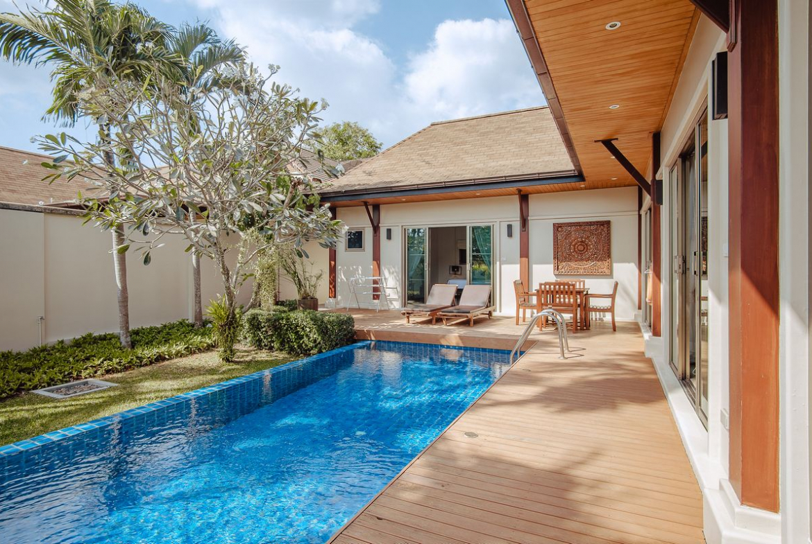 A private garden pool villa for rent located in the popular area of Naiharn Beach, Phuket.