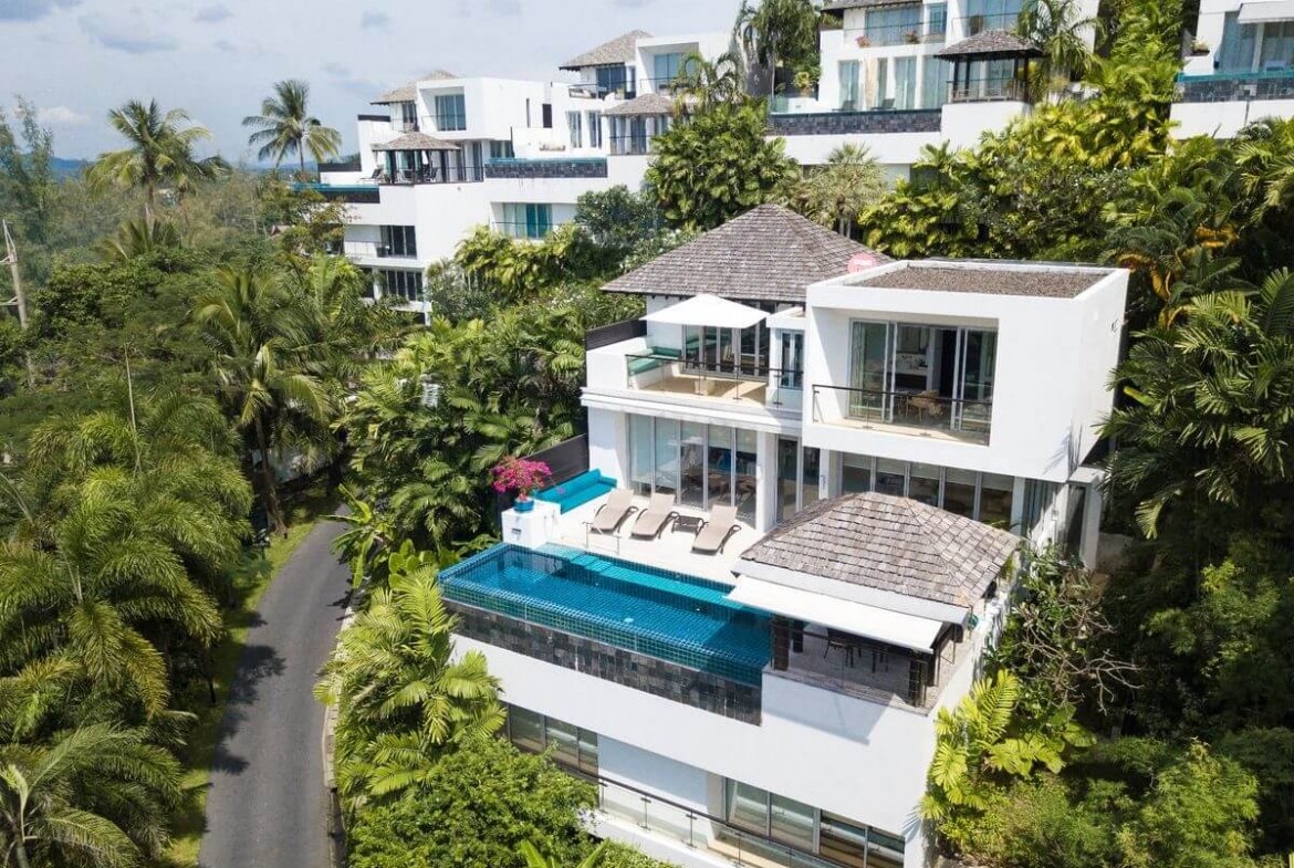 An innovative version of a modern designed sea view pool villa, just steps from Phuket’s famed and exclusive Surin Beach. The villa has spectacular, elevated views of the pristine Surin Beach and the crystal-clear waters of the Andaman Sea. This is the closest villa in the Surin Heights estate to the beach; a mere 200 metre walk to reach these golden, tropical sands. Construction of this modern-styled villa was completed in 2006. The architect, Naga Concepts, created an innovative design that has been matched by high quality construction to produce a property that is not only aesthetically pleasing, but also low on maintenance and high on longevity.