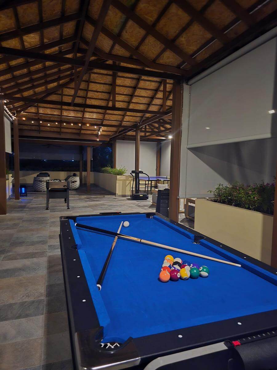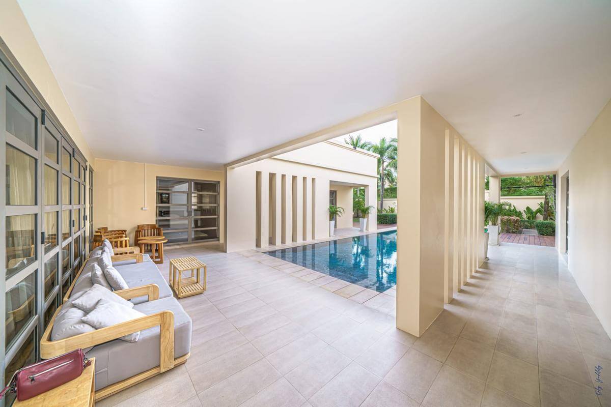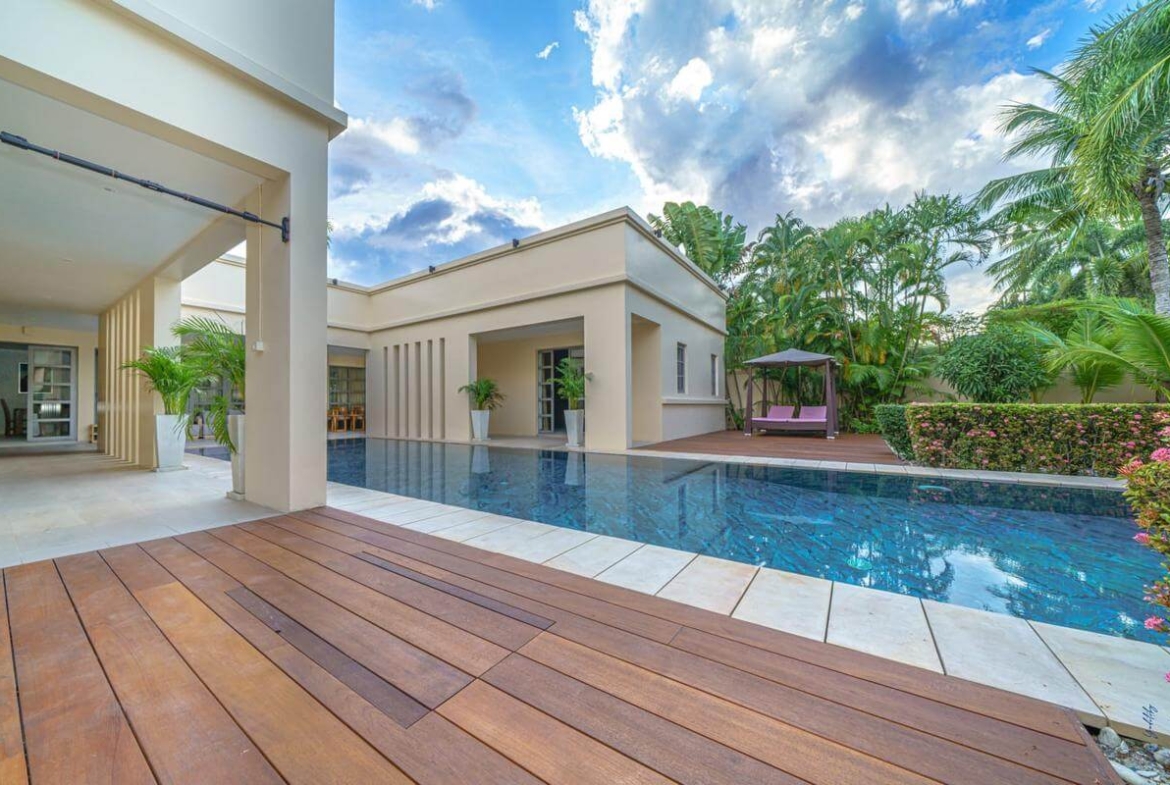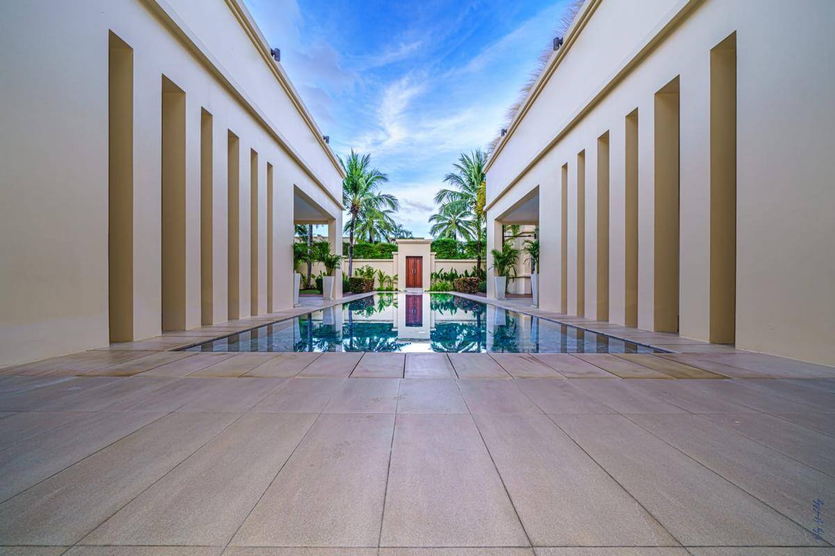 The four bed pool villa has a private pool, garden area, roof top lounge and is finished with granite, natural stone, wood and high tech electronics features.  The estate offers an onsite spa, and tour desk.