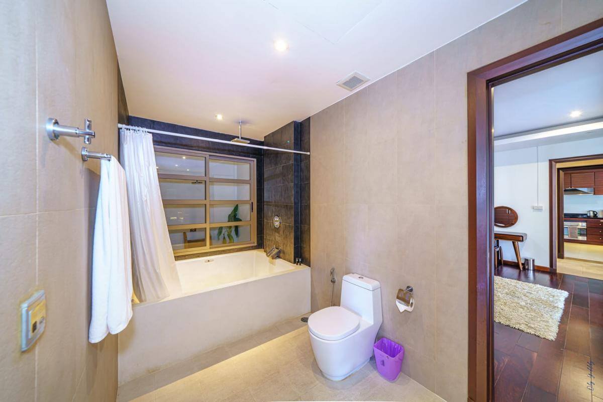 It is only 6 minutes walk to Bangtao beach and same distance to the local shopping centre (Tesco, McDonalds, Pizza Company, Boots  – pharmacy ,etc).  Five minutes drive to Laguna 5 Star resorts and golf  course.Daily: – 11,500 THB