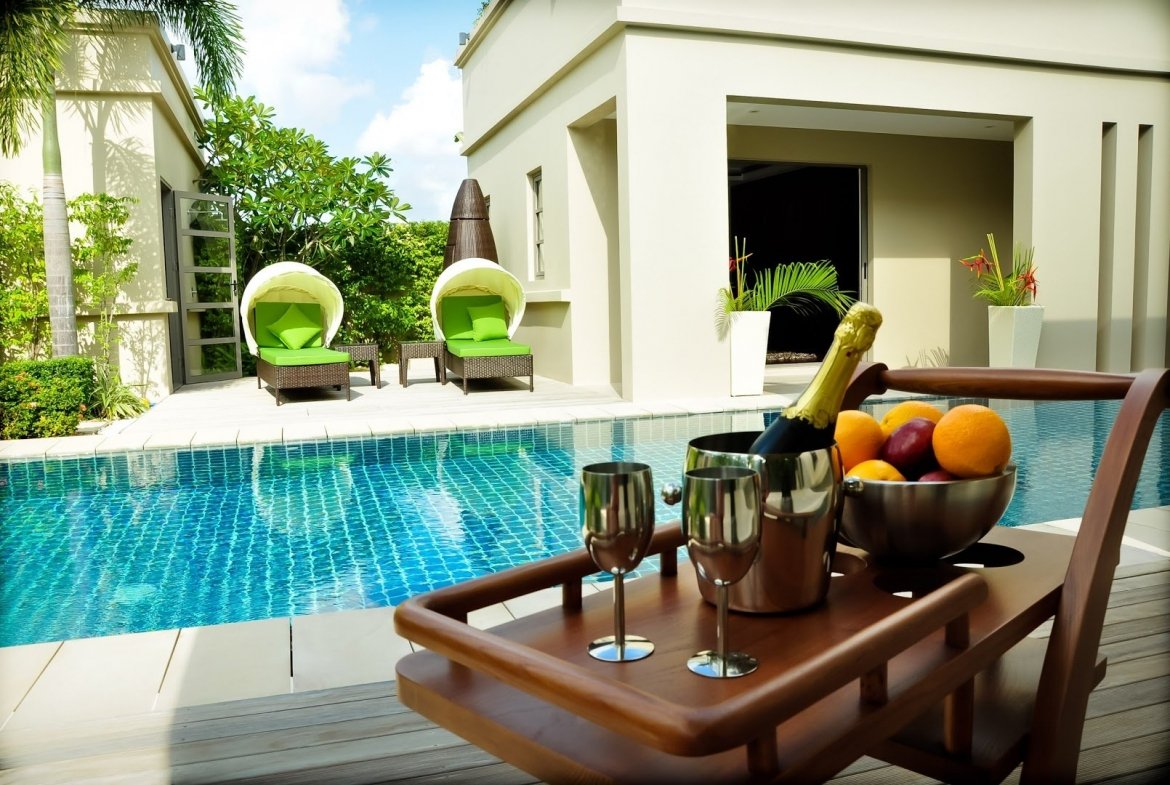 The four bed pool villa has a private pool, garden area, roof top lounge and is finished with granite, natural stone, wood and high tech electronics features. The estate offers an onsite spa, and tour desk.