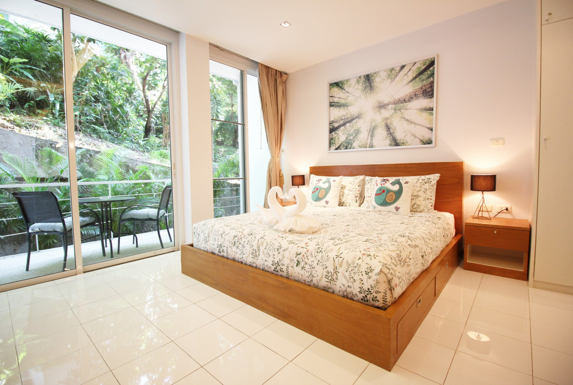 After a day of beach adventures or exploring the vibrant streets of Kamala, retire to the spacious bedroom featuring a comfortable king-sized bed – the perfect place to rest and rejuvenate for another day of exploration.