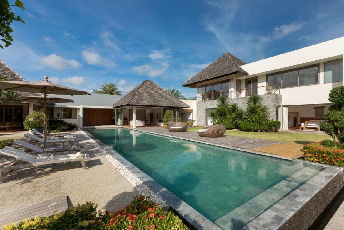 A luxury 4 bedroom private residential villa with stunning lawned gardens and beautiful pool.  The villa is renowned for the modern minimalist design and clever use of layout and natural materials to deliver exceptional luxury in an effortless and comfortable ambience.