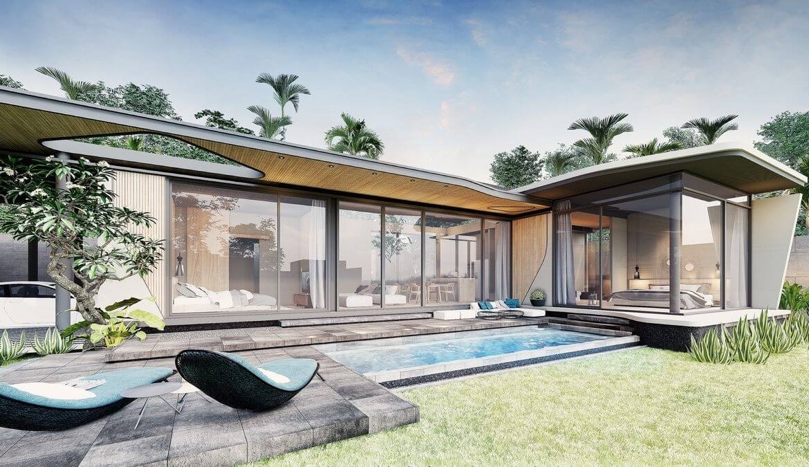 Eye-catching tropical private pool villas designed with modern minimalism concepts, each with their own private pool, courtyard and the option of an additional bedroom.
